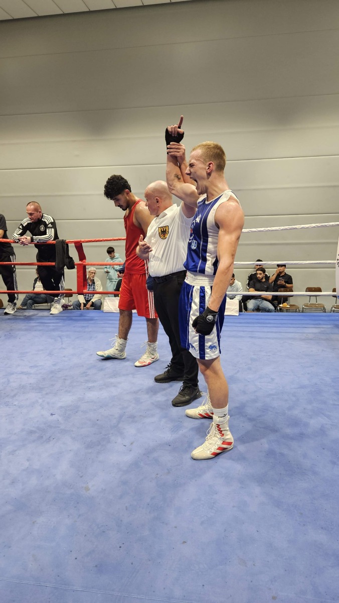 Besonders spannend wurde es beim Auftritt von Jarek Middendorf, der gegen den erfahrenen Hazar Disli vom BC Norden in den Ring stieg. Von Beginn an entwickelte sich ein packender und ereignisreicher Kampf, der die ganze Halle in Begeisterung versetzte. Unter lautem Jubel zeigte Jarek großen Einsatz, Durchhaltevermögen und taktisches Geschick. Am Ende belohnte ihn das Kampfgericht mit einem Punktsieg.